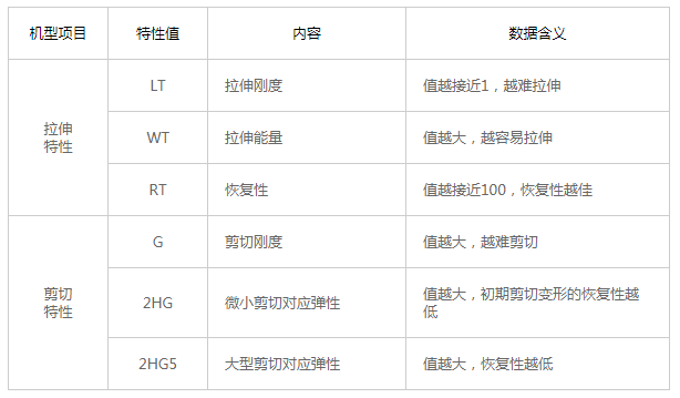 拉伸特性和剪切特性數據將影響風格手感的“彈力”“張力”。這些特性將影響“形態(tài)穩(wěn)定性”“易產生紋路性”。